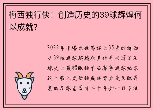 梅西的传奇征程,是足球史上一个不可或缺的传奇故事。 从他的成名之路,到多次夺得金球奖的辉煌成就,再到他在巴塞罗那和阿根廷国家队的无数奇迹般表现,梅西一直是足球世界的焦点。 本文将从梅西的早年生涯、巅峰时期、困境与挣扎以及最终的成就四个方面,深入探讨这位足球天才的传奇人生。 1、早年生涯 在梅西的传...